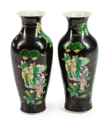 A Pair of Chinese Famille Noir Porcelain Vases
