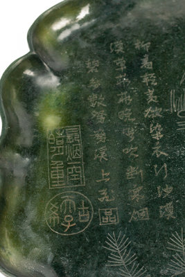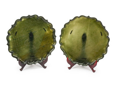 A Near Pair of Chinese Carved Spinach Jade Chargers