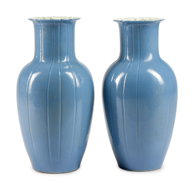A Pair of Chinese Celeste Bleu Porcelain Vases