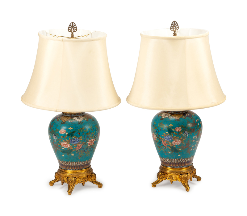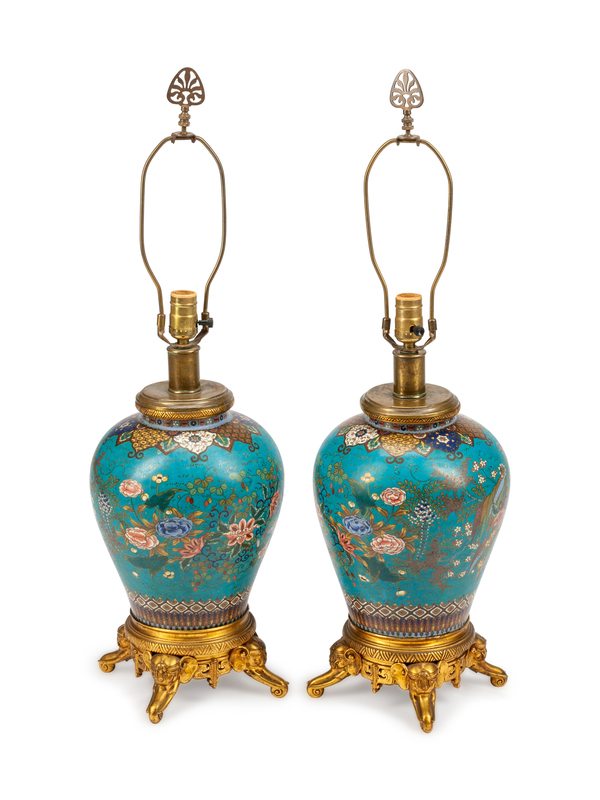 A Pair of Chinese Bronze Mounted Cloisonne Jars