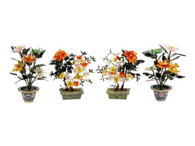 Two Pairs of Chinese Carved Hardstone Trees
