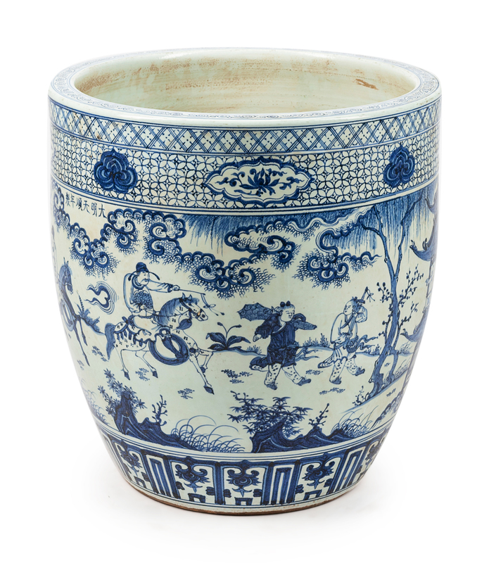 A Large Chinese Export Blue and White Porcelain Fishbowl