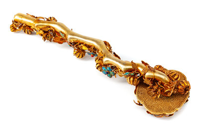 A Chinese Jeweled and Enameled Silver-Gilt Filigree Scepter