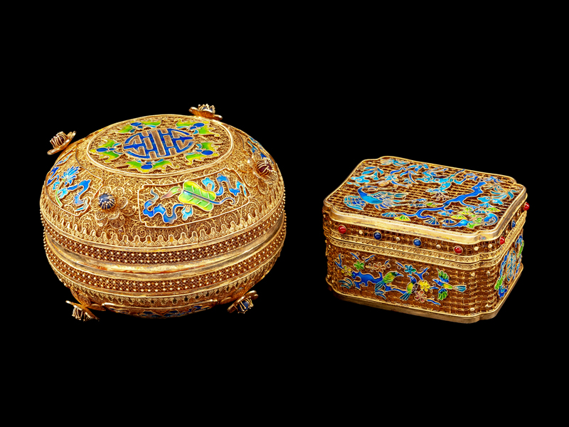 Two Chinese Silver-Gilt Filigree and Enamel Articles