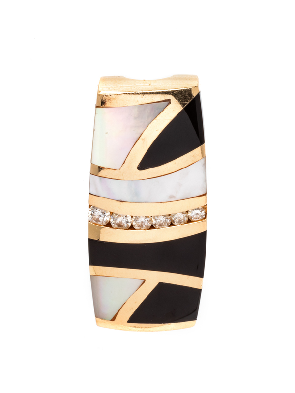 A 14 Karat Yellow Gold, Diamond, Mother-of-Pearl and Onyx Slide Pendant,