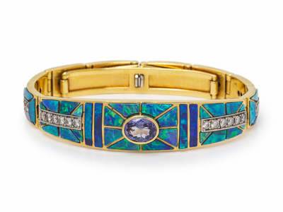 An 18 Karat Yellow Gold, Platinum, Tanzanite, Diamond and Opal Bracelet, David R. Freeland Jr.,
