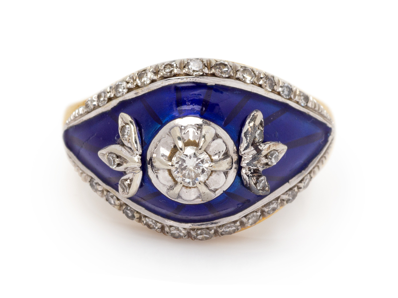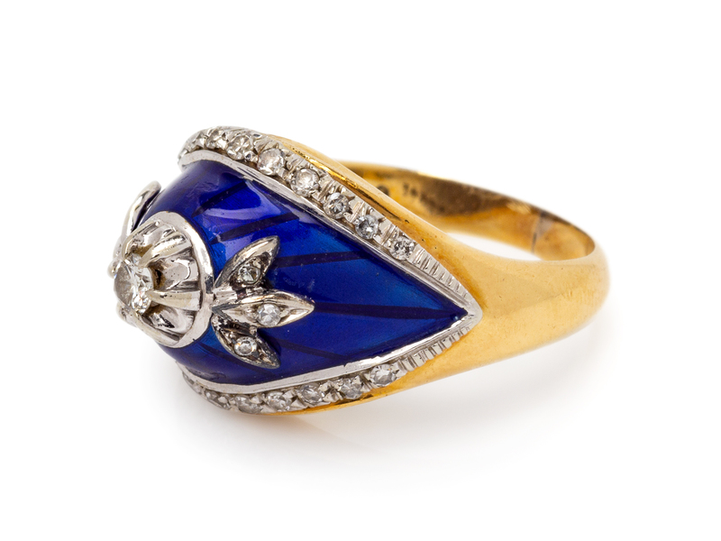 An 18 Karat Yellow Gold, Diamond and Enamel Ring, Italian,