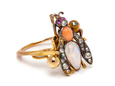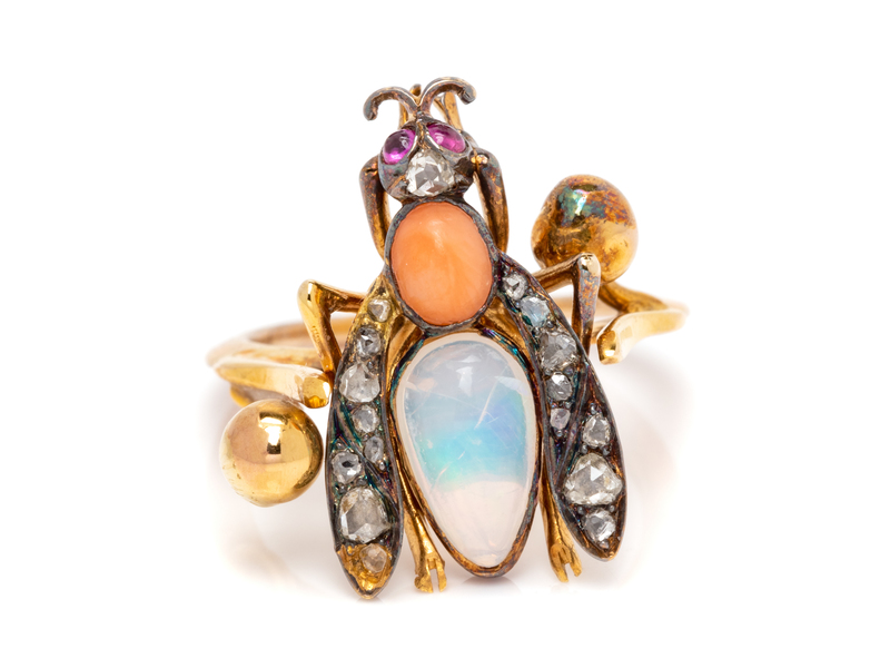 A Yellow Gold, Multigem and Diamond Insect Ring,