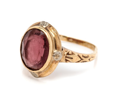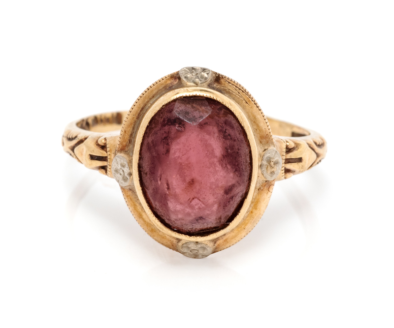containing one oval mixed cut purple simulant stone measuring approximately 9.60 x 7.80 x 5.07 mm.