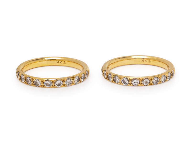 A Pair of 14 Karat Yellow Gold and Diamond Rings,