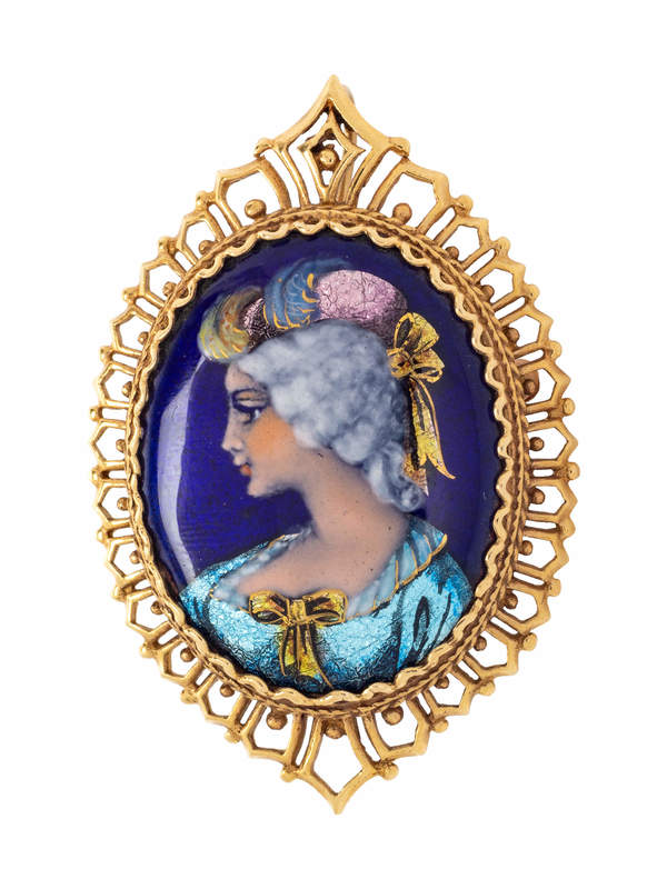 A 14 Karat Yellow Gold and Enamel Pendant/Brooch, French,
