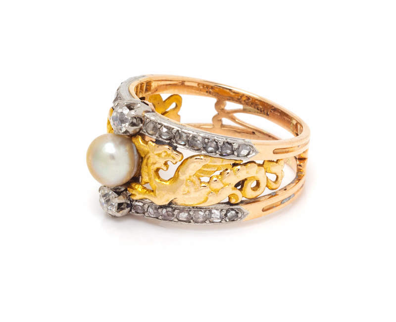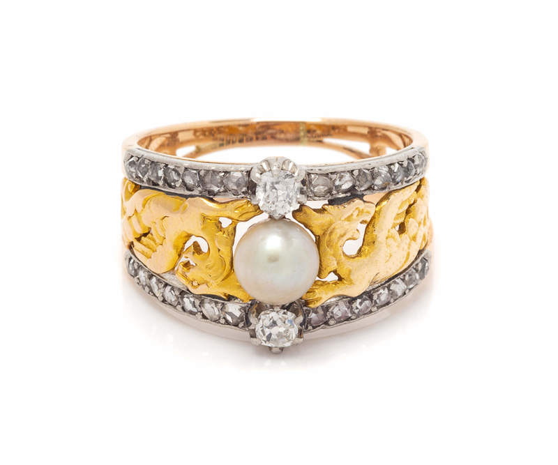 A Platinum Topped Yellow Gold, Diamond and Pearl Ring,