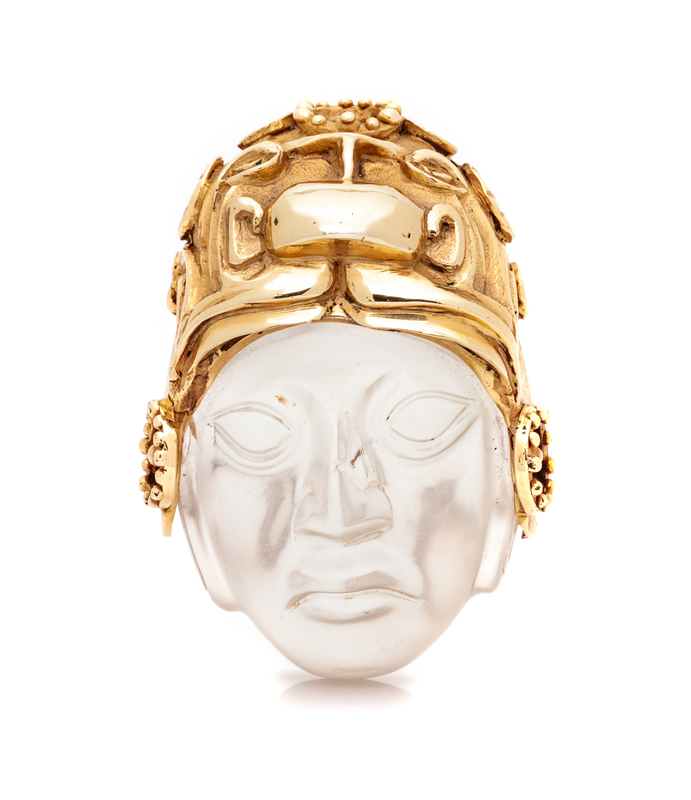 A Yellow Gold and Rock Crystal Mesoamerican Motif Pendant,