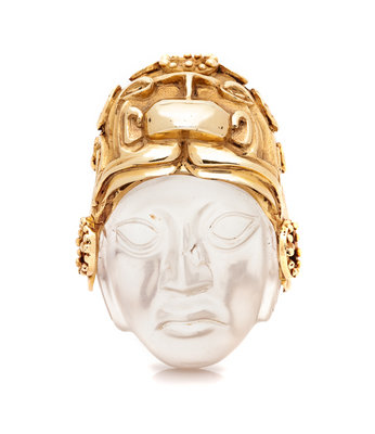 consisting of a carved rock crystal face surmounted with yellow gold headpiece.