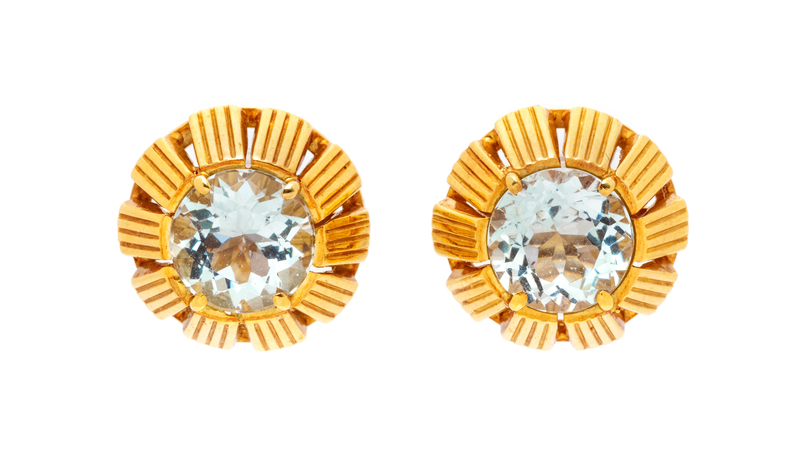 A Pair of 18 Karat Yellow Gold and Aquamarine Earrings,