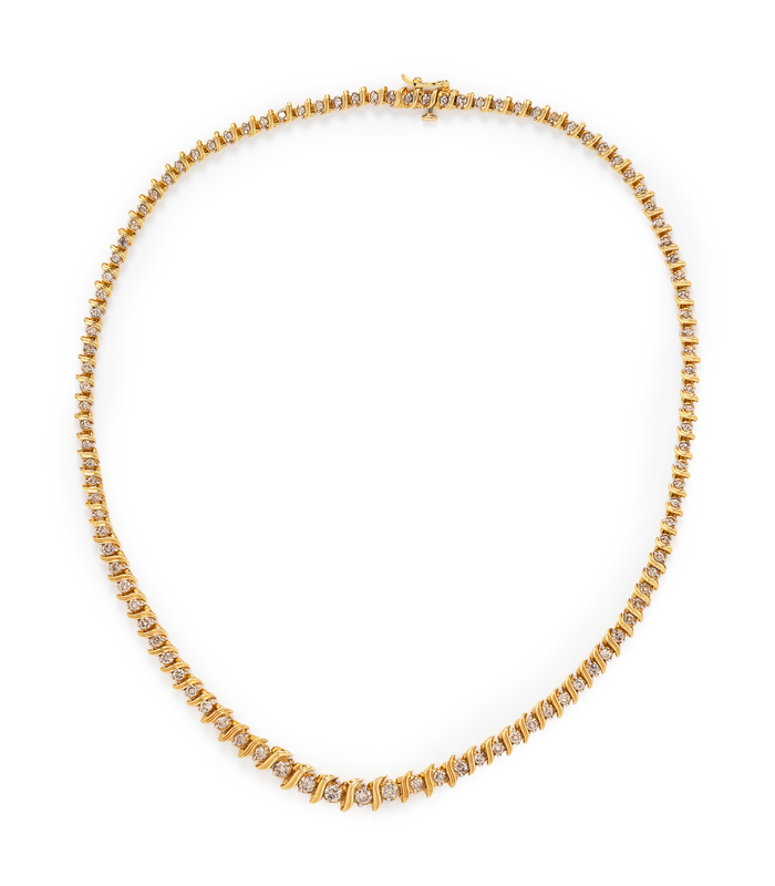 A 14 Karat Yellow Gold and Diamond Necklace,