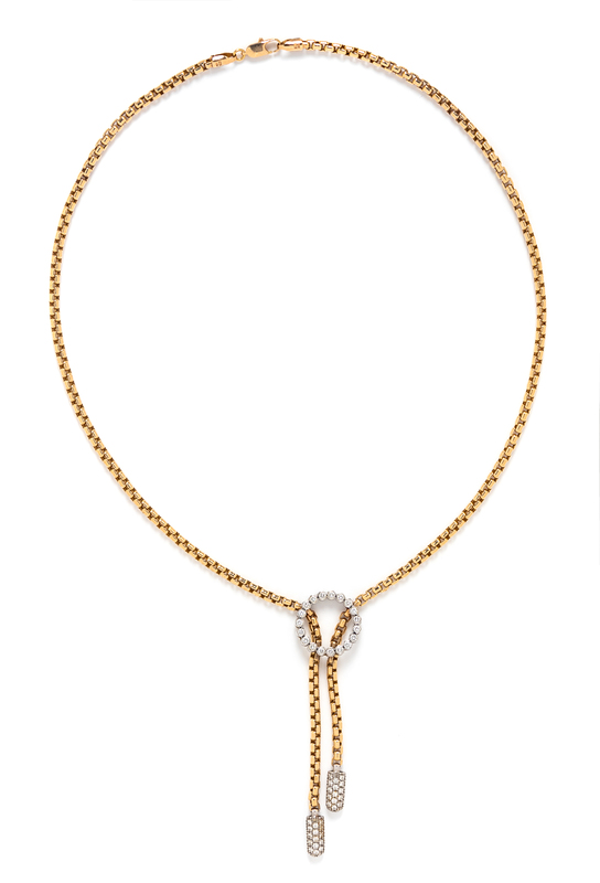 A 14 Karat Bicolor Gold and Diamond Necklace, Italian,