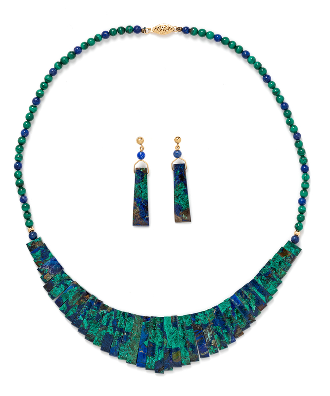 A 14 Karat Yellow Gold and Azure Malachite Demi-Parure,