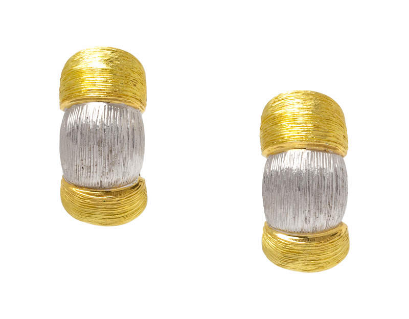 A Pair of 18 Karat Bicolor Gold Earclips, Italian,