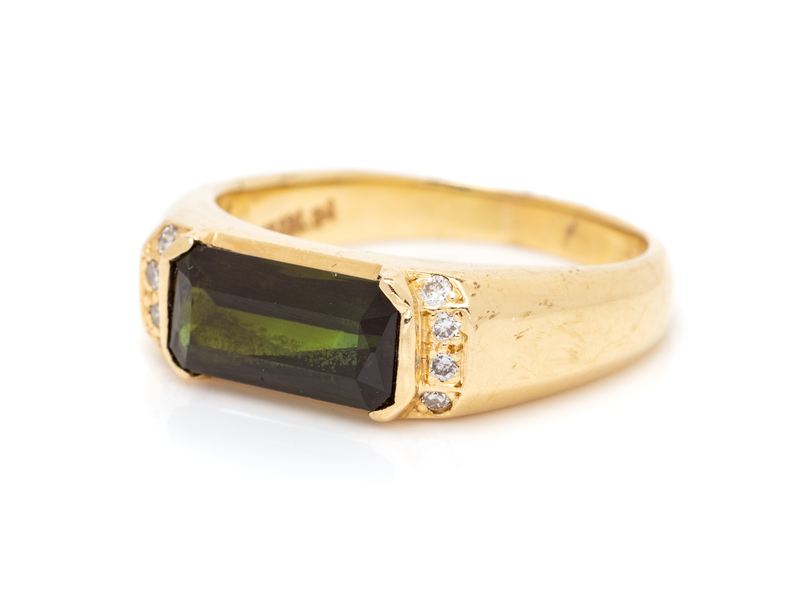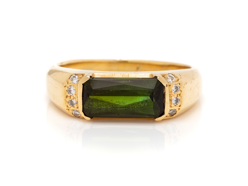 A 14 Karat Yellow Gold, Green Tourmaline and Diamond Ring,