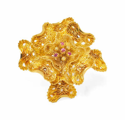 An 18 Karat Yellow Gold and Ruby Brooch,