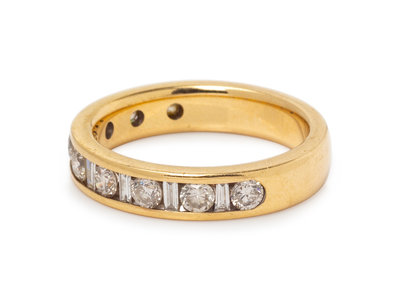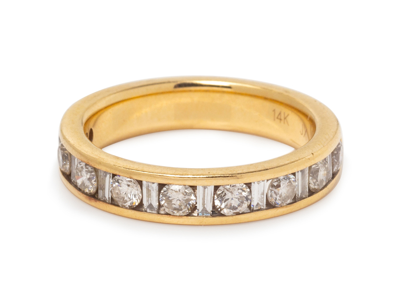 containing nine round brilliant cut diamonds weighing approximately 0.60 carat total and eight baguette cut diamonds weighing approximately 0.15 carat total.