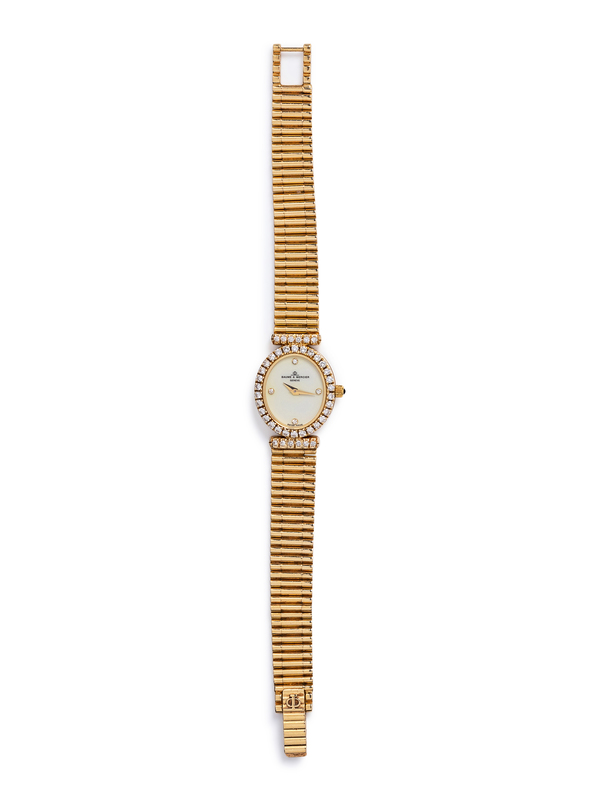A 14 Karat Yellow Gold and Diamond Wristwatch, Baume & Mercier,