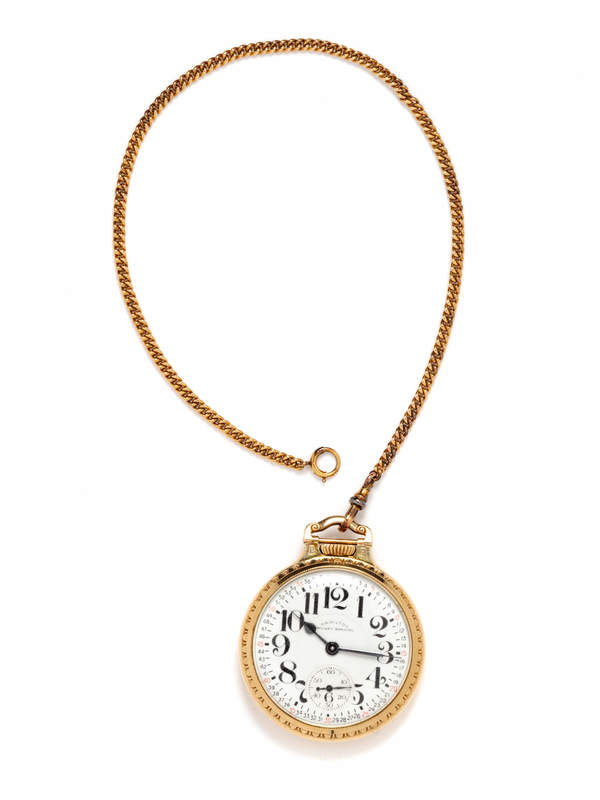 A 10 Karat Gold Filled Open Face Pocket Watch and Gold Filled Fob Chain, Hamilton,
