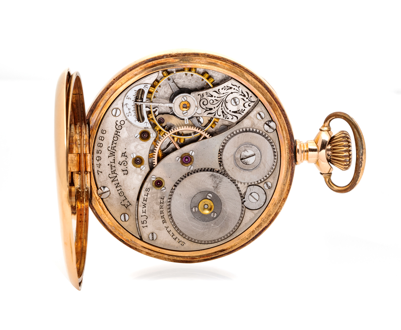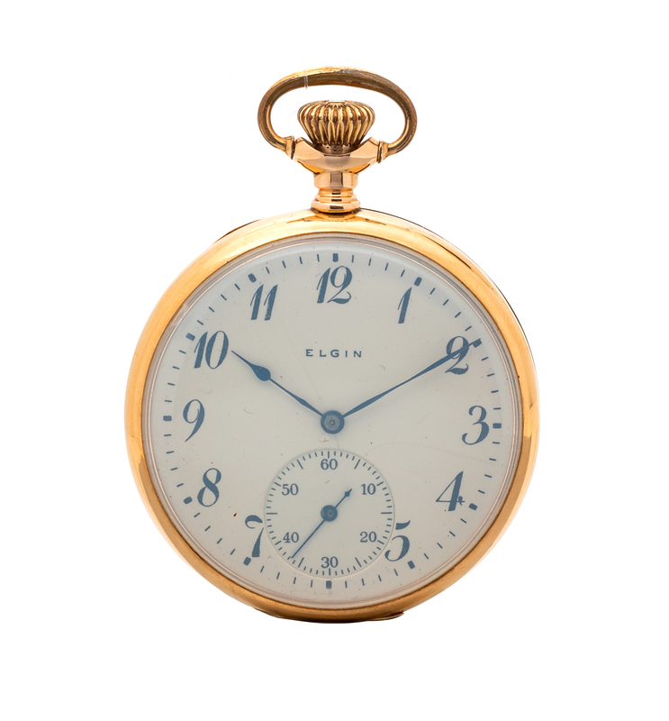A 14 Karat Yellow Gold Open Face Pocket Watch, Elgin, Circa 1899,