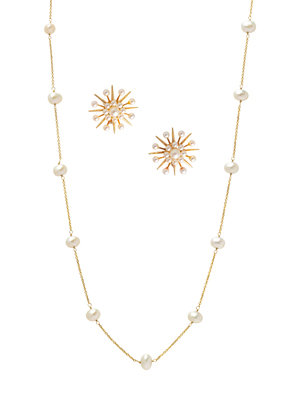 A Collection of 14 Karat Yellow Gold and Cultured Pearl Jewelry,