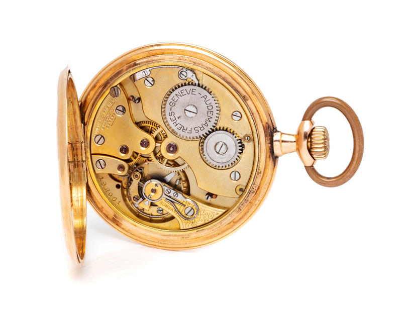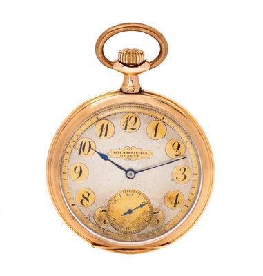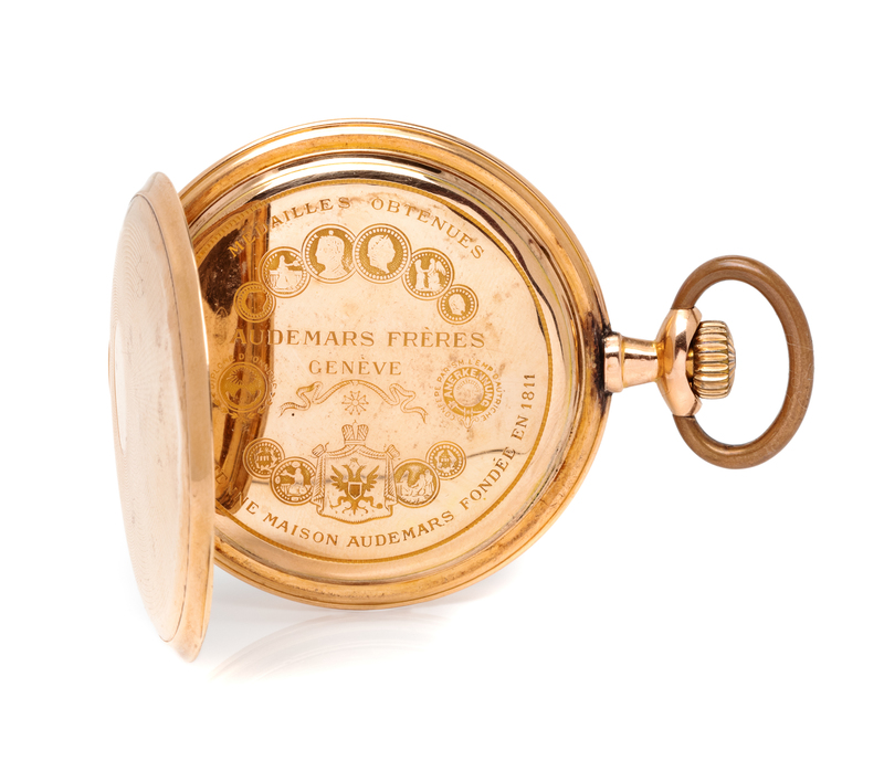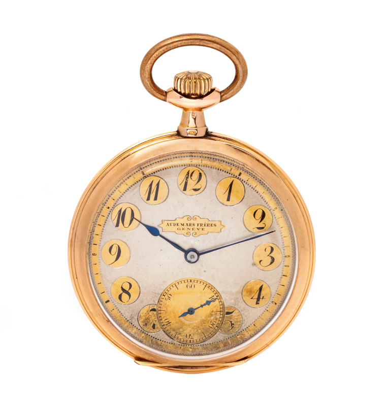 A 14 Karat Rose Gold Open Face Pocket Watch, Audemars Freres,
