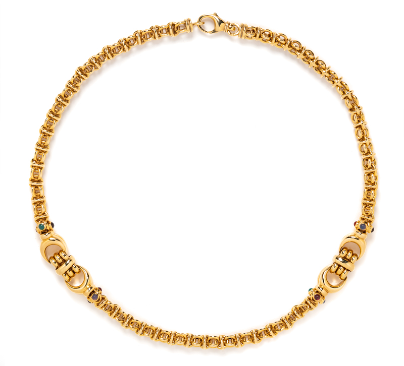 A 14 Karat Yellow Gold and Multigem Necklace, Italian,