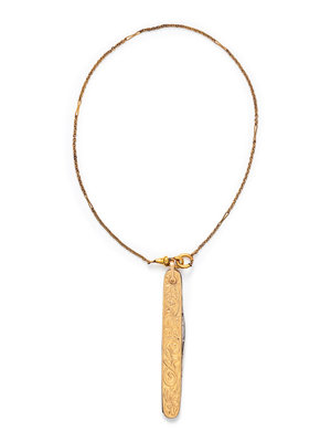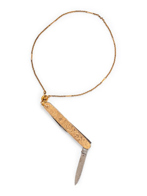 An Art Nouveau Gold Filled and Metal Pocket Knife on Chain,