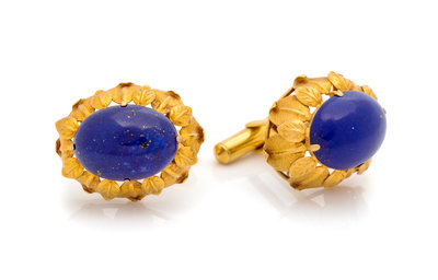 A Pair of 14 Karat Yellow Gold and Lapis Lazuli Cufflinks,