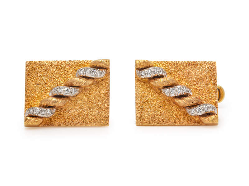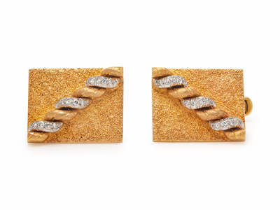 A Pair of 14 Karat Bicolor Gold and Diamond Cufflinks,
