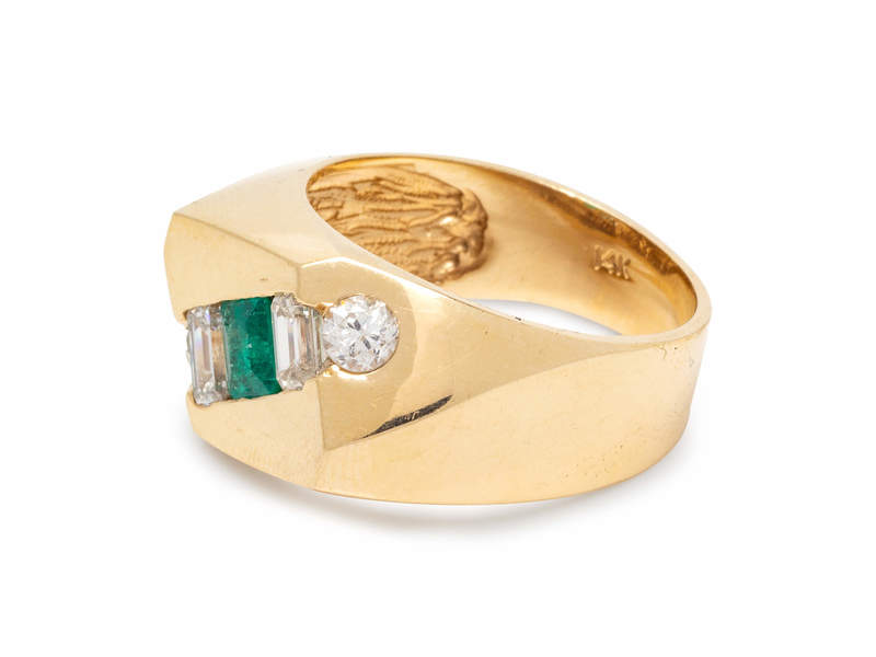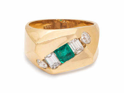 A 14 Karat Yellow Gold, Emerald and Diamond Ring,