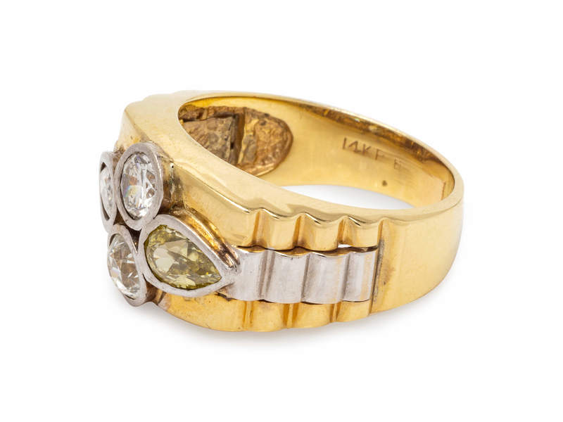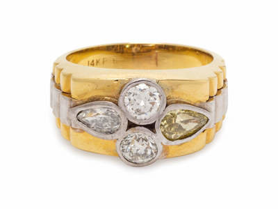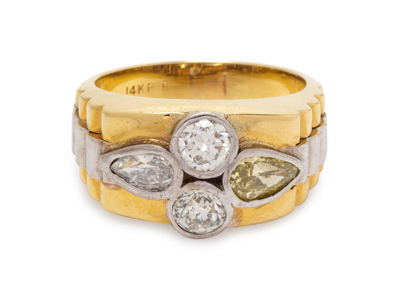 A 14 Karat Bicolor Gold, Diamond and Colored Diamond Ring,