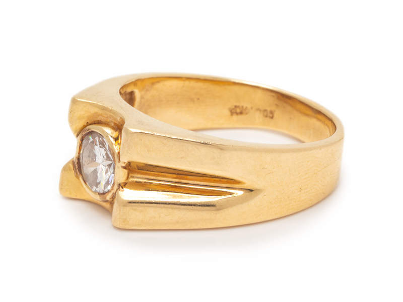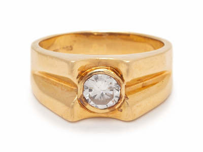 containing one round brilliant cut diamond weighing approximately 0.75 carat.