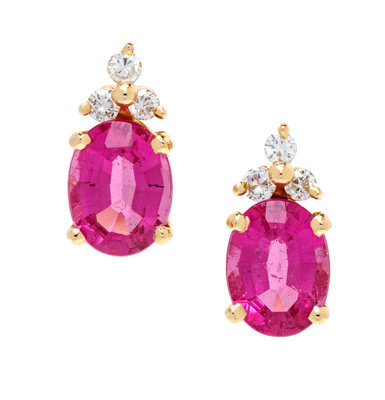 A Pair of 14 Karat Yellow Gold, Pink Tourmaline and Diamond Earrings,