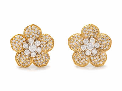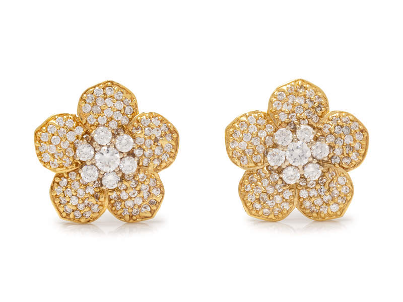 consisting of flower motif earclips containing numerous round mixed cut diamond simulants.