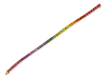 A 14 Karat Yellow Gold and Multigem Bracelet,