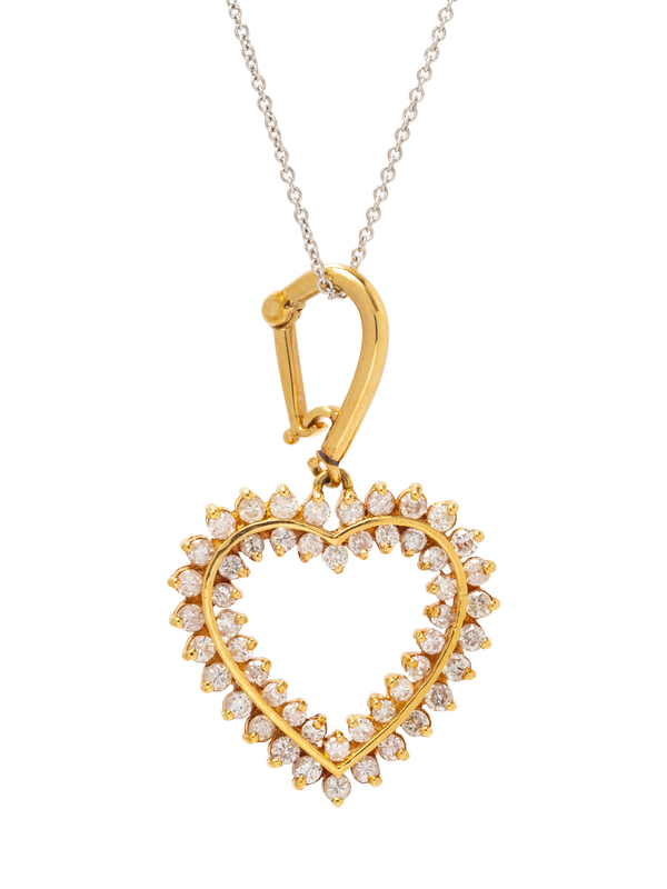 A Bicolor Gold and Diamond Heart Pendant/Necklace,