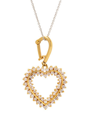 consisting of a yellow gold heart pendant containing 51 round brilliant cut diamonds weighing approximately 1.00 carat total, suspended from an 18 karat white gold cable link chain necklace by Tiffany & Co.