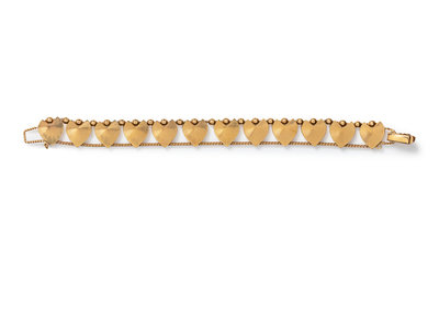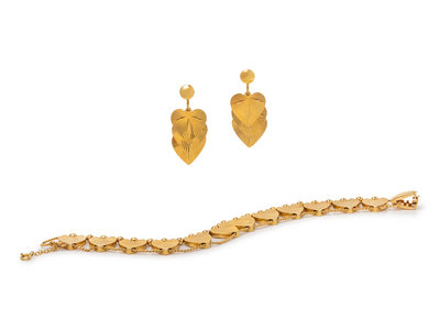 A Retro 14 Karat Yellow Gold Heart Motif Demi-Parure,