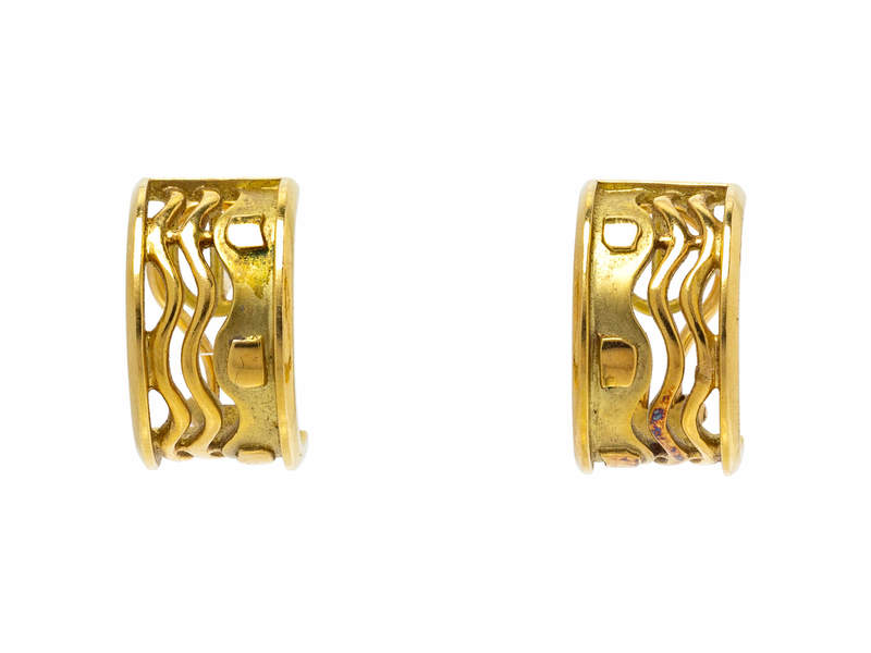 A Pair of 18 Karat Yellow Gold Earclips, Bagues,