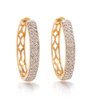 A Pair of 14 Karat Yellow Gold and Diamond Hoop Earrings,