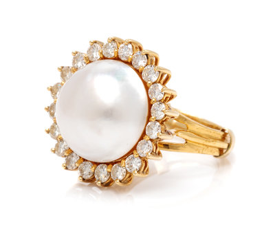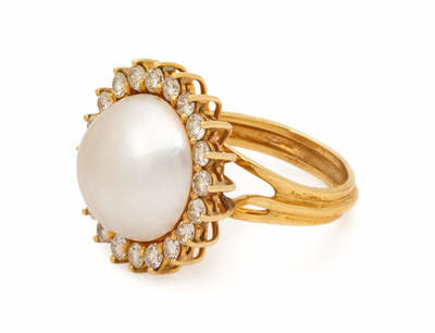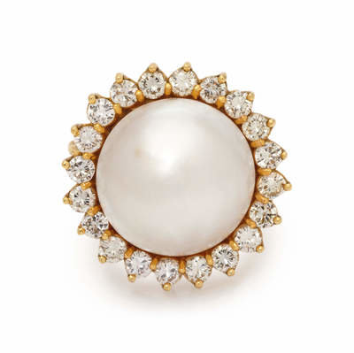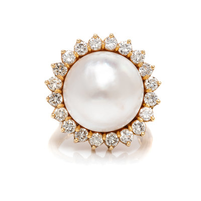 A Yellow Gold, Cultured Mabe Pearl and Diamond Ring,