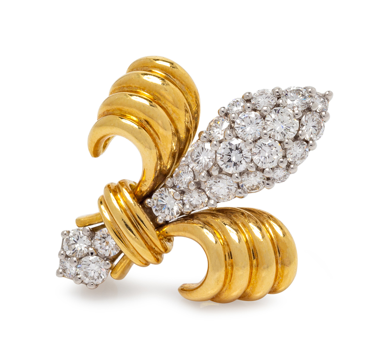 designed as a fleur-de-lis containing 22 round brilliant cut diamonds weighing approximately 1.30 carats total.