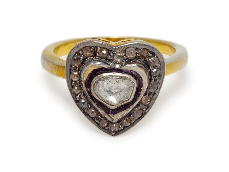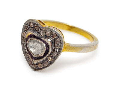 A Silver Topped Yellow Gold Plated and Diamond Heart Motif Ring,