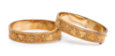 A Pair of Foliate Motif Bangle Bracelets,